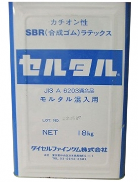 セルタルは、SBR(合成ゴムラテックス系)の補修・改修、外装タイル貼り付け、その他各種下地モルタル用の混和材です。セルタルをセメントモルタルに混入することにより、接着強度・圧縮強度・曲げ強度・耐薬品性・耐久性などを大幅に改善することができます。