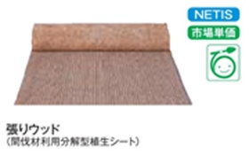 盛土のり面(一般的土質)緑化用の薄綿と間伐材(木毛)付の植生シートです。