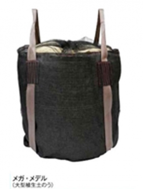 側面と上面にメッシュ生地を使用し、ここに種子・肥料を装着した、緑化が可能な大型植生土のうです。
