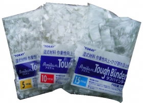 タフバインダーはナイロン短繊維で湿式材料の作業性向上、ひび割れ防止材として効果を発揮します。