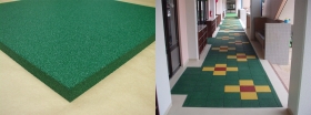 性舗装材、アブソーブマットは使用済タイヤのゴムチップを使用したマットです。