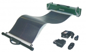 日植のモバイルソーラーユニットは、電気を使うために最低限必要なアイテムを1梱包にセット。